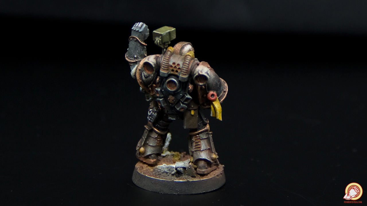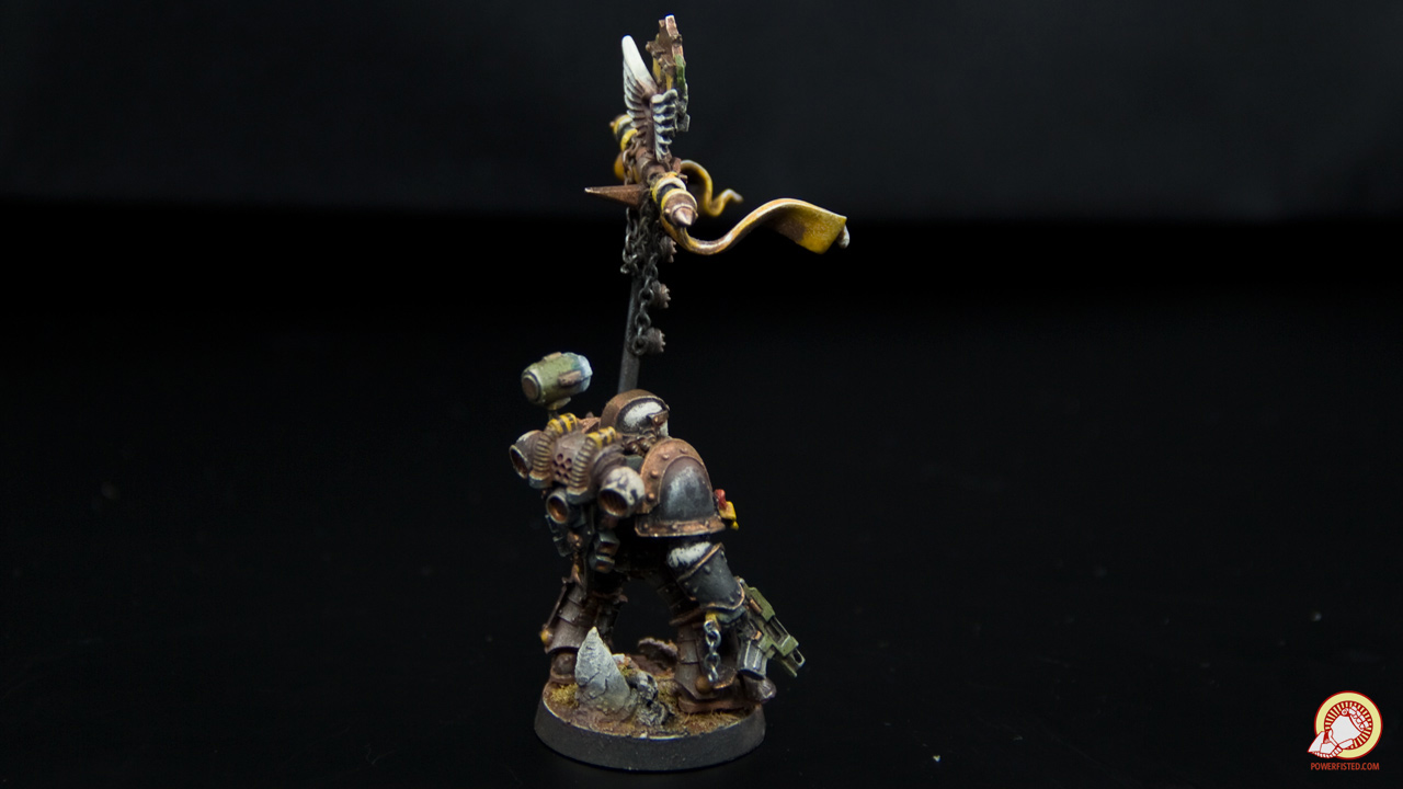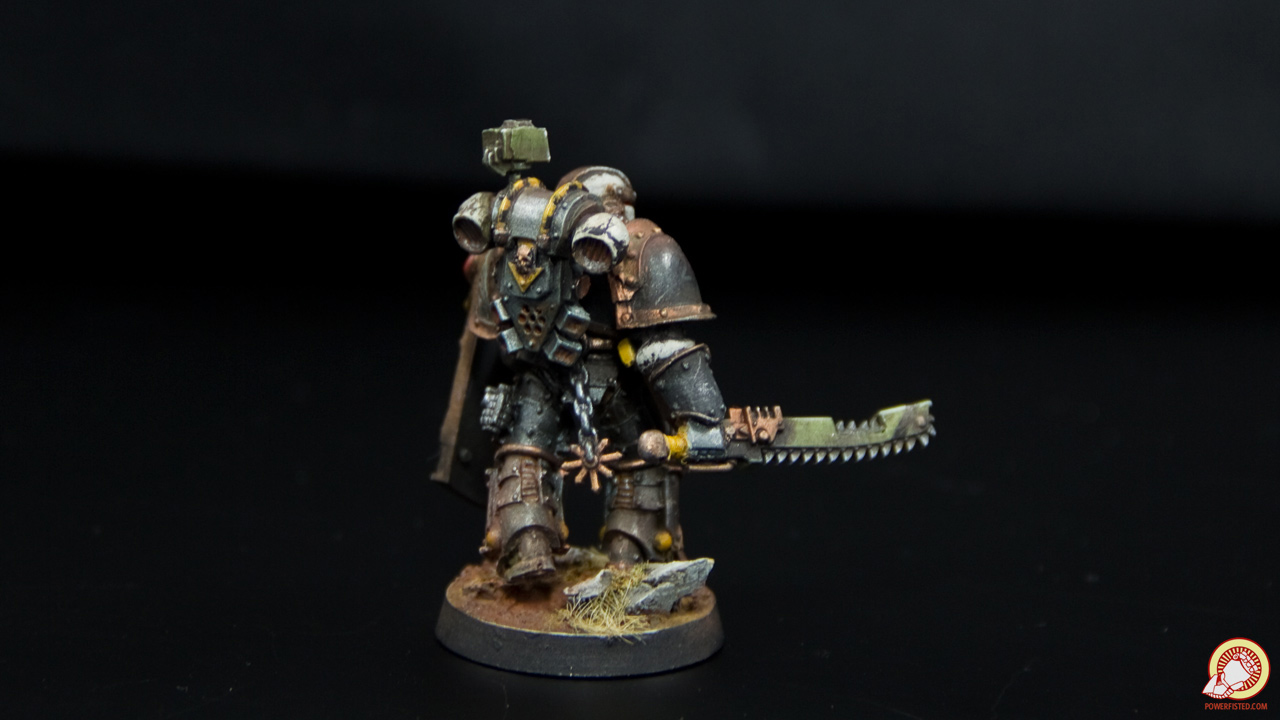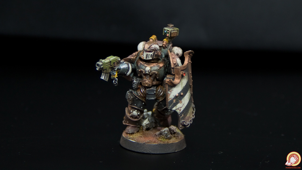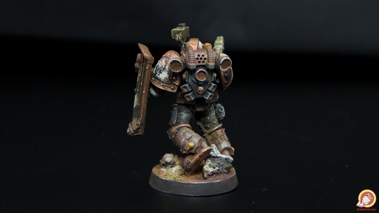 I tried a few new techniques such as waiting a day or longer before removing oil washes from the armor. This made it much more ‘chunky’ and was a painful process, but yielded pretty interesting results. I like how it eroded away my decals. As the HH books release newer and newer Iron Warrior HH fluff, I find my legion choice less and less appealing. Having these legionaries not care about their legion markings at all helps reinforce that they care just as little about their own Primarch as they do the chaos gods or emperor. Down the road I think I might even do a sergeant or two with “Iron” or “Perturabo” crossed out from his shield.