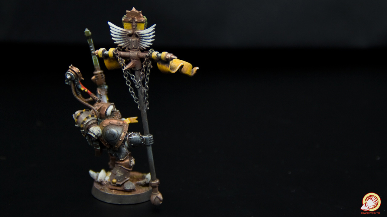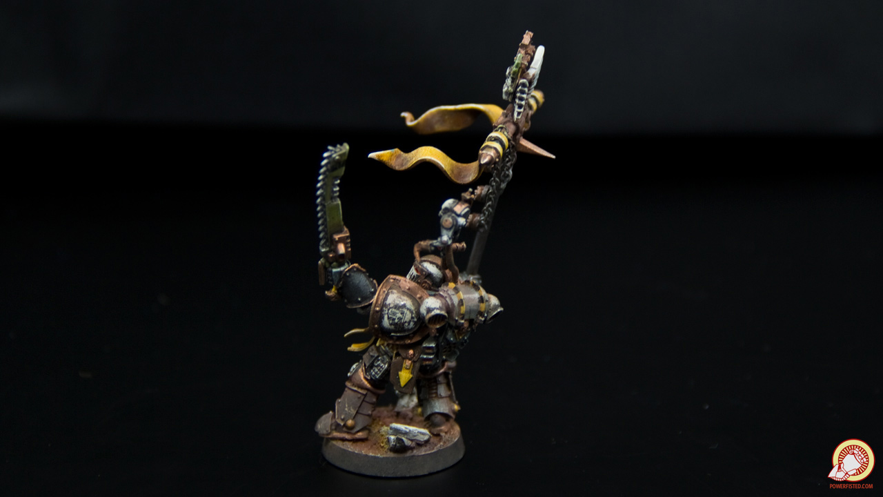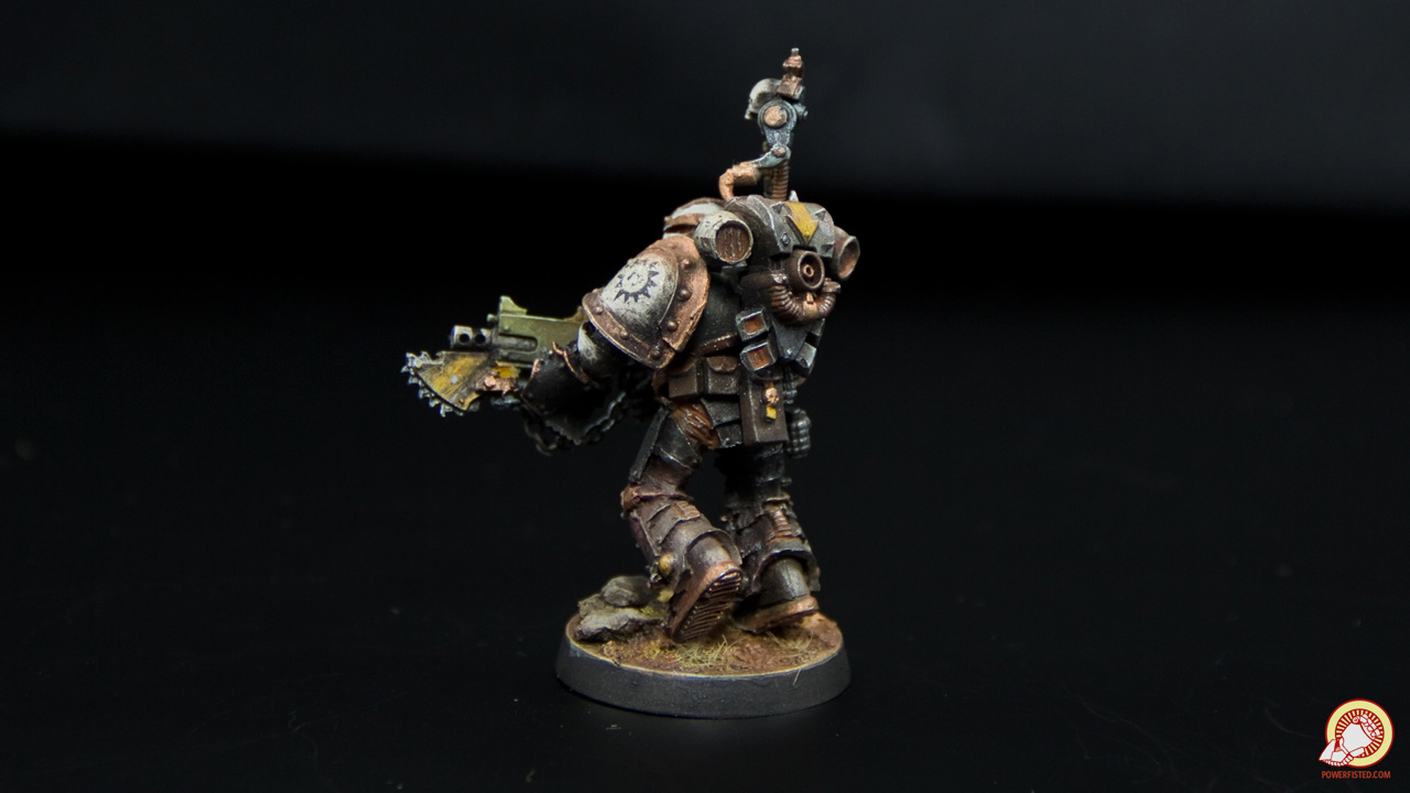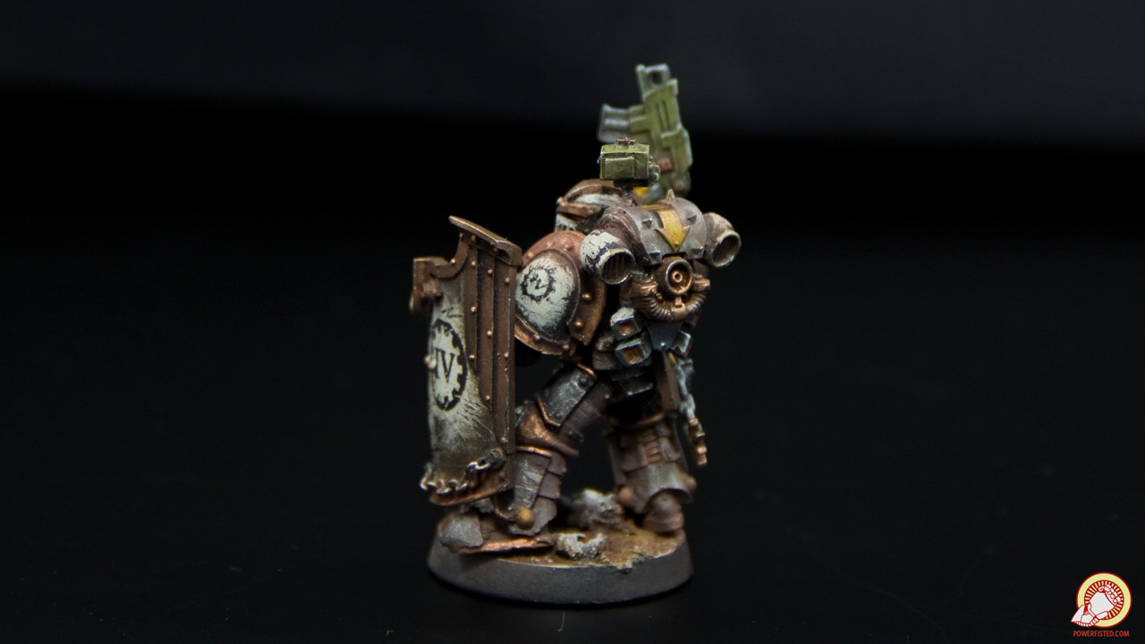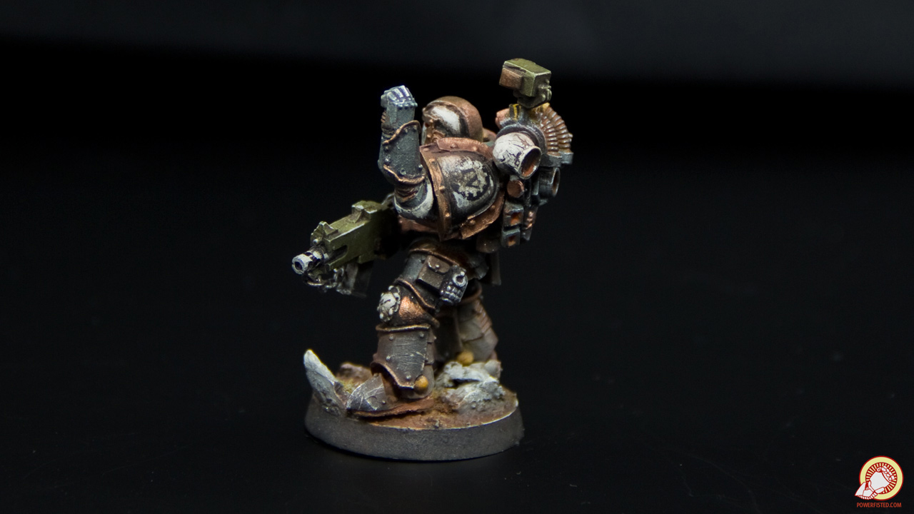 I tried a few new techniques such as waiting a day or longer before removing oil washes from the armor. This made it much more ‘chunky’ and was a painful process, but yielded pretty interesting results. I like how it eroded away my decals. As the HH books release newer and newer Iron Warrior HH fluff, I find my legion choice less and less appealing. Having these legionaries not care about their legion markings at all helps reinforce that they care just as little about their own Primarch as they do the chaos gods or emperor. Down the road I think I might even do a sergeant or two with “Iron” or “Perturabo” crossed out from his shield.